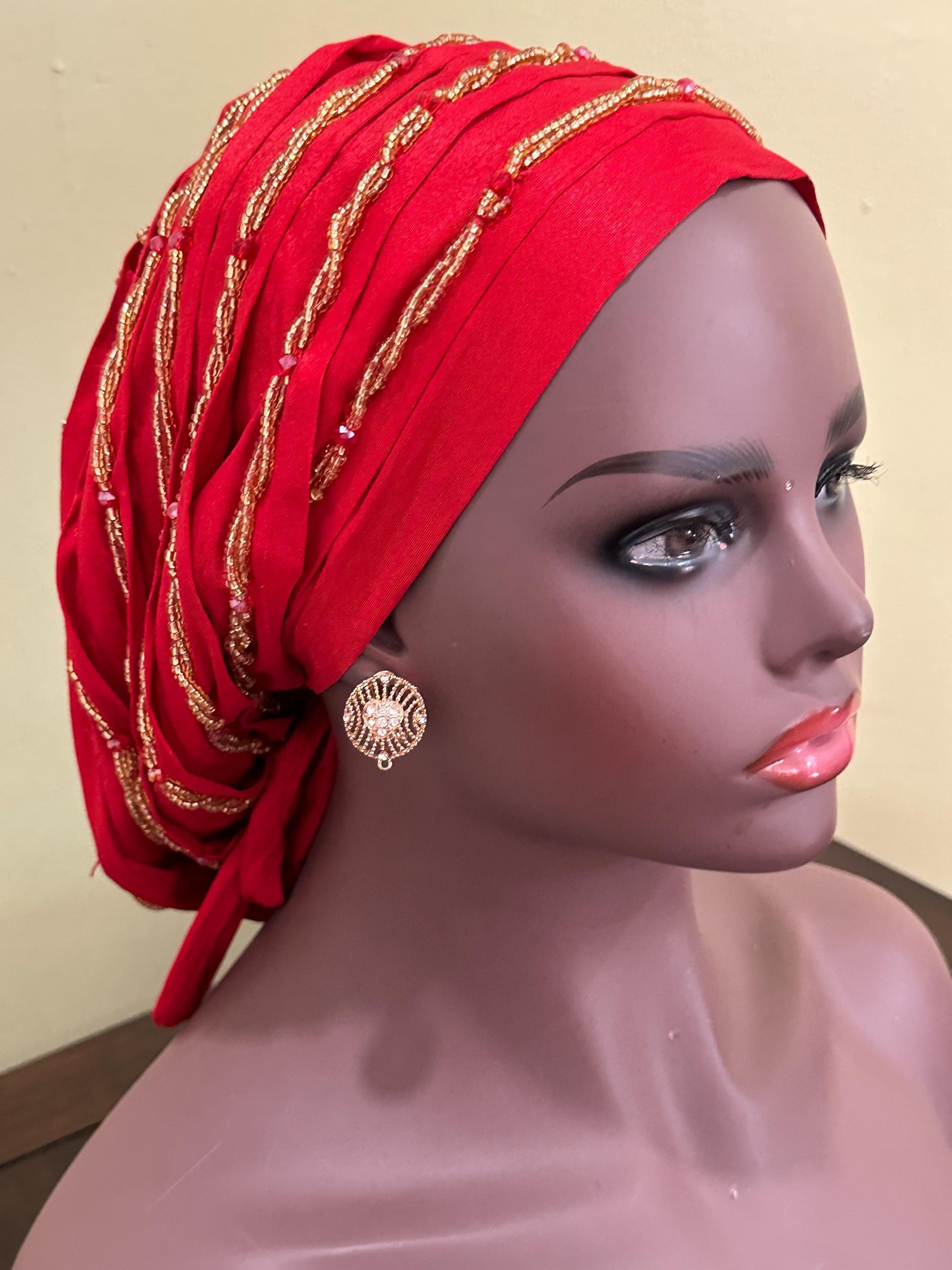 Beautiful Beaded Turban with good quality Material, this women beaded and fully lined headwear is made of quality silky material, it's soft and comfortable, light and breathable, non fading and non pilling, safe and skin friendly, smooth and can be adjusted with the tie, not easy to slip off, not cause damage to your head and skin, and can be worn for a long time
