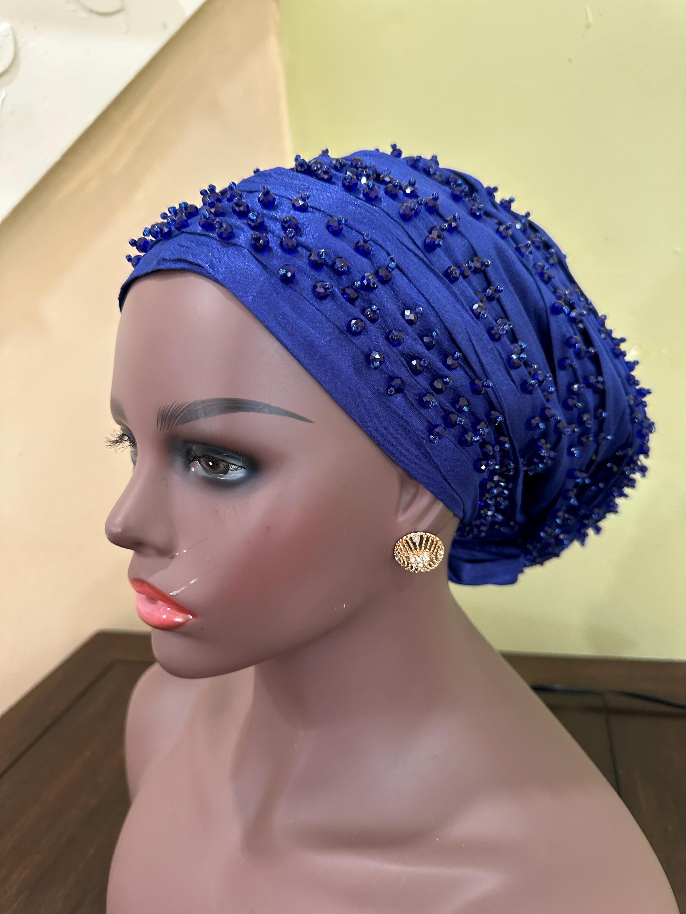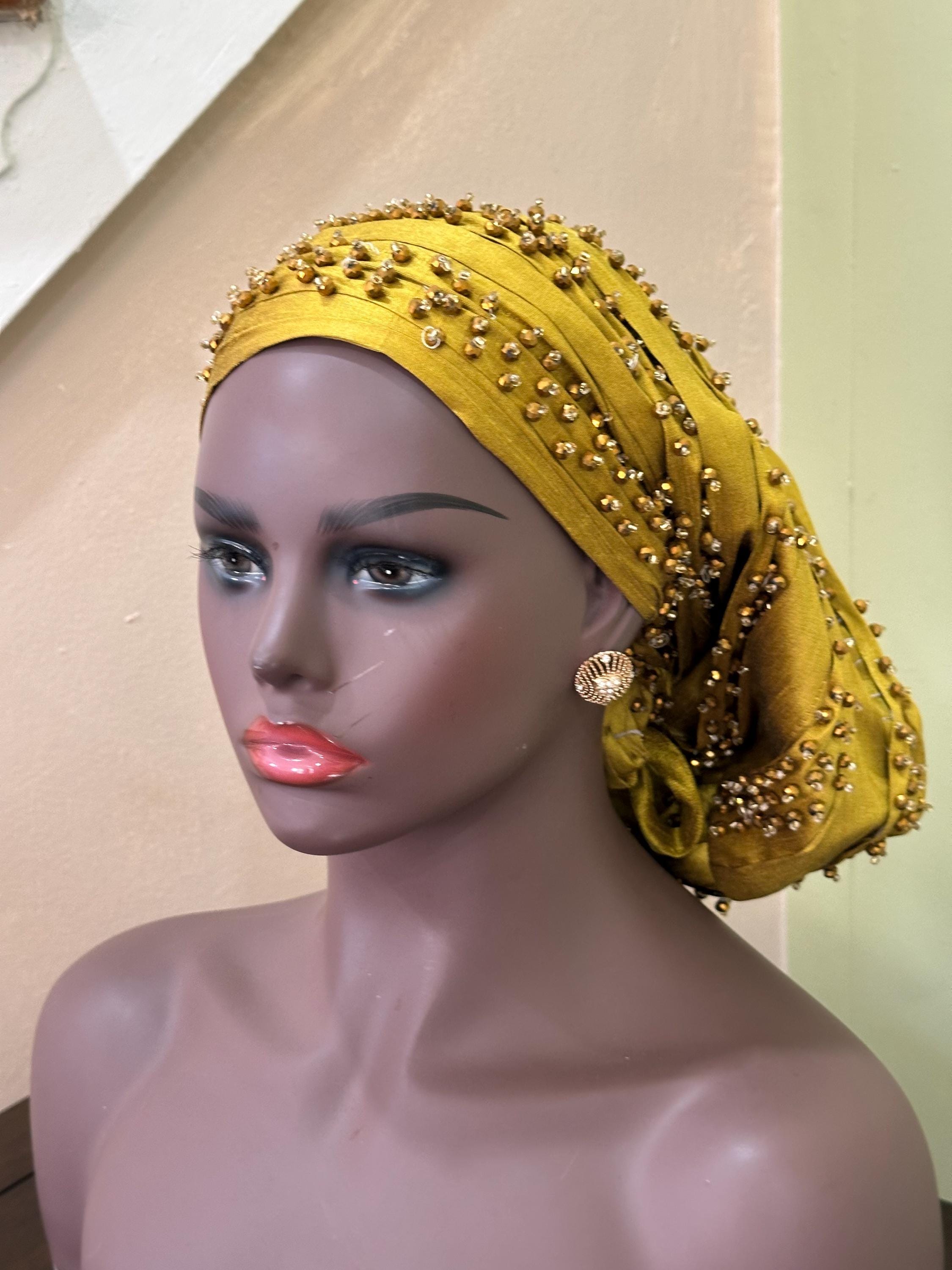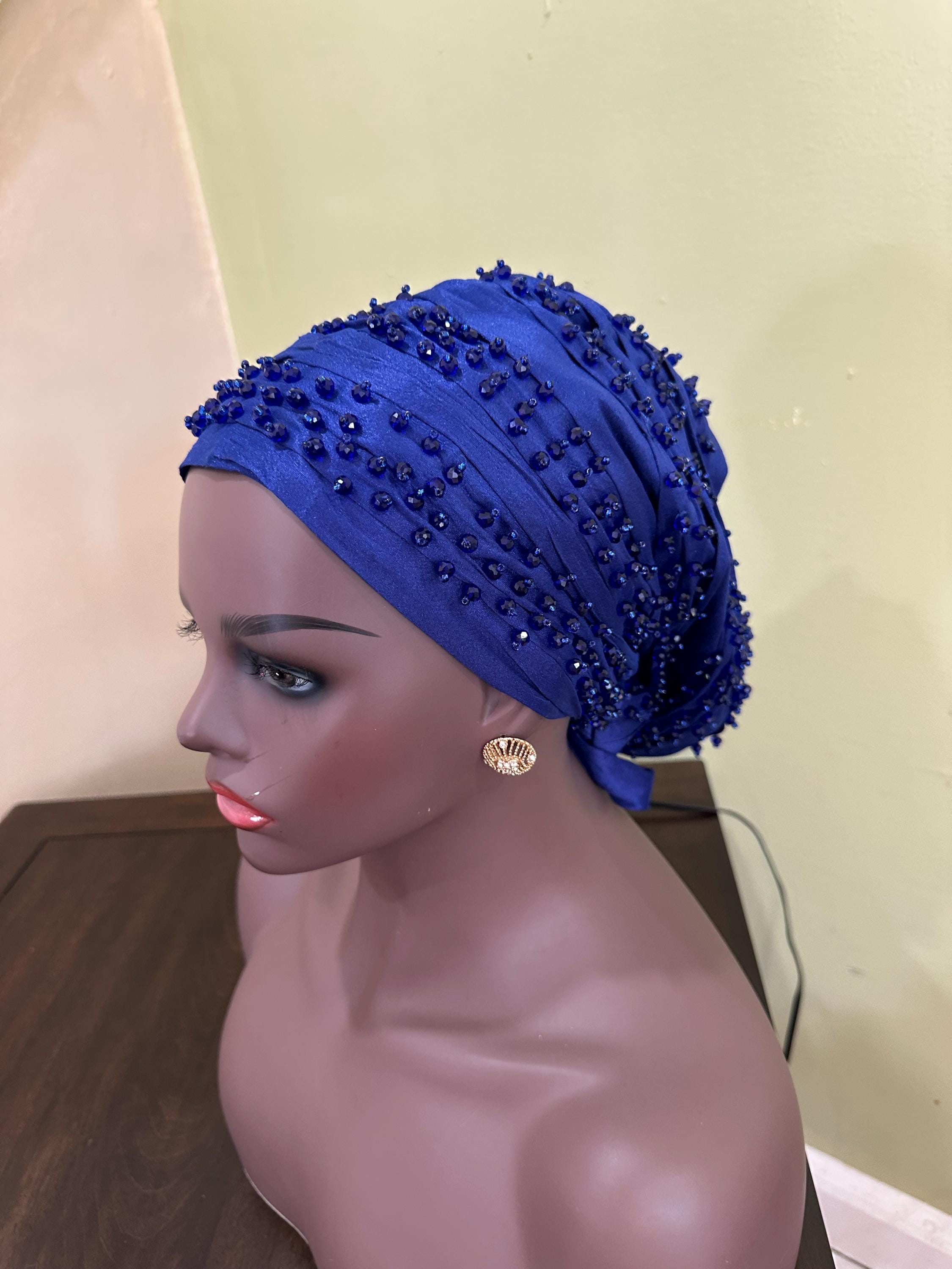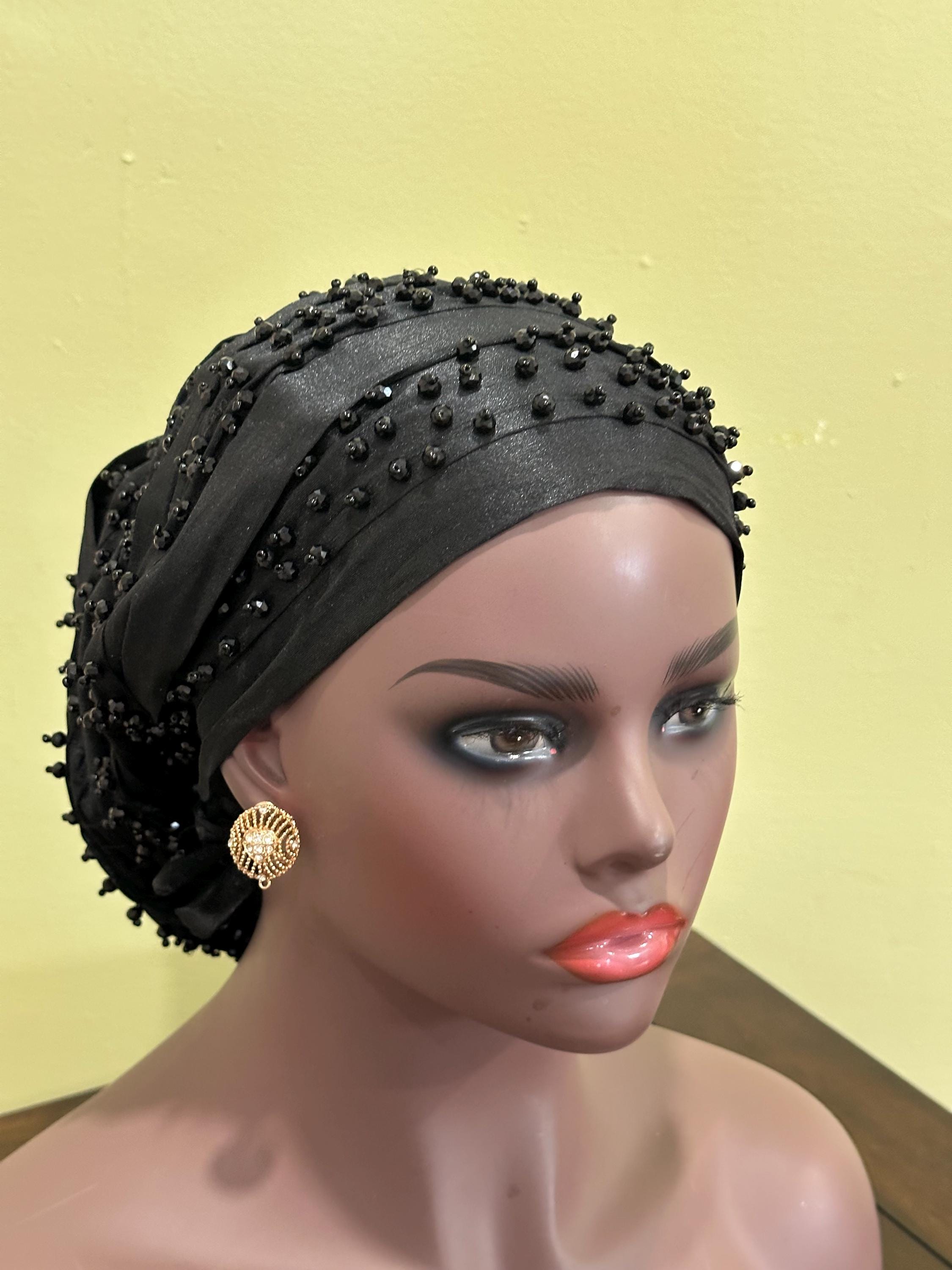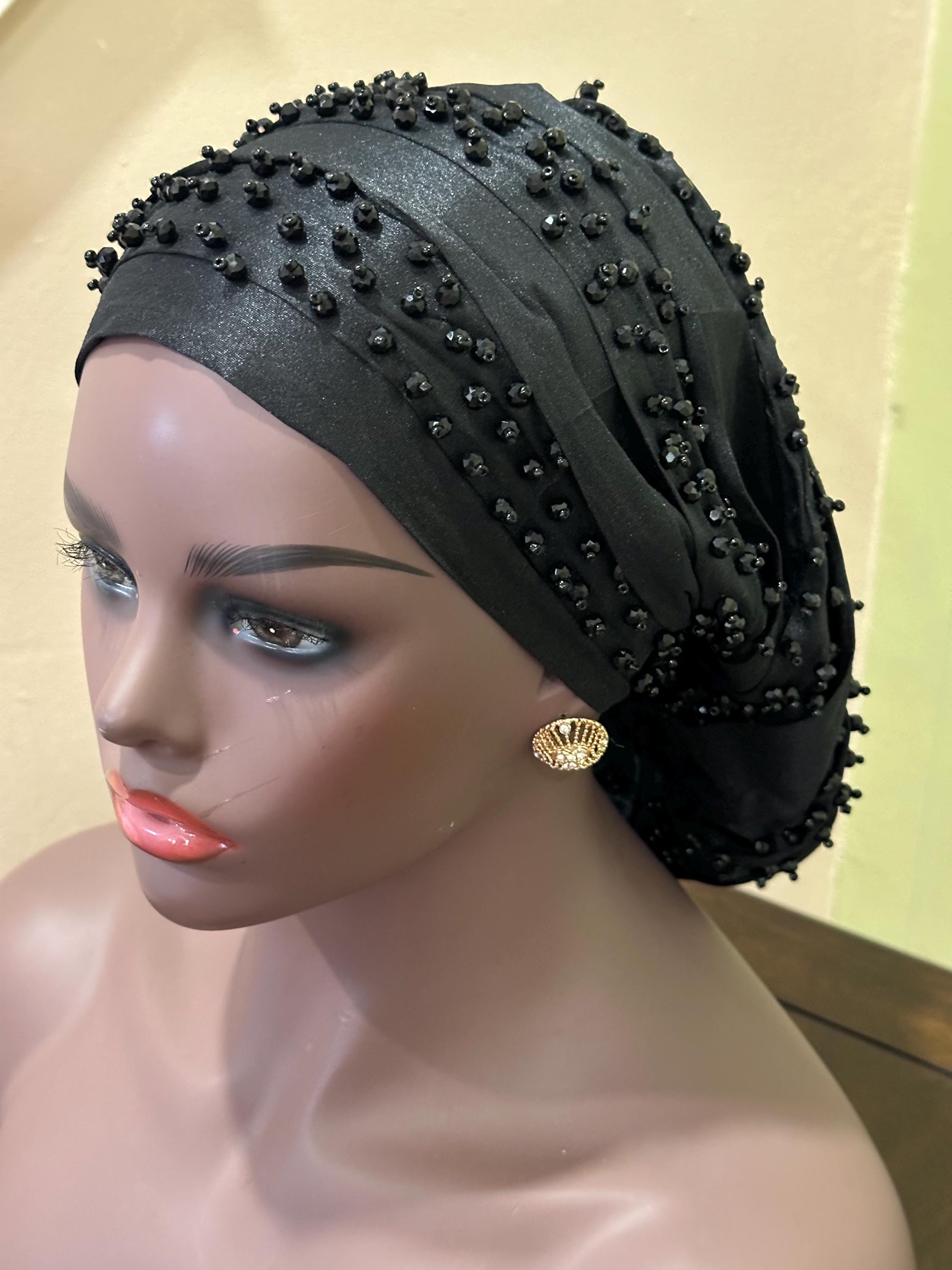Beautiful Beaded Turban with good quality Material, this women beaded and fully lined headwear is made of quality silky material, it's soft and comfortable, light and breathable, non fading and non pilling, safe and skin friendly, smooth and can be adjusted with the tie, not easy to slip off, not cause damage to your head and skin, and can be worn for a long time